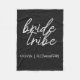 Einfache, moderne und stilvolle "Bride Tribe"-Decken mit schwarz-weißem Script-Schriftart im trendigen Stil. Die Namen können mit den Namen Ihres Brautparty personalisiert werden. Man kann es für Braut, Brautmädchen, Blume oder die Mutter der Braut verwenden. Die koordinierenden Accessoires für Teambride funktionieren gut für ein Brautparty Vorschläge, das Brautparty, Junggeselinnen-Abschied, die Probe Abendessen, den Hochzeitsvormittag oder den Tag nach dem Hochzeitsbrunch. Macht dem Brautparty ein durchdachte personalisiertes Geschenk.
