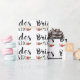 Modernes Textdesign in schwarz-braun mit Blumenakzent in einem nahtlosen Muster auf weißem Hintergrund.