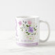 Ein Geschenk für eine Brautjungfrau. Das Design zeigt die Monogramm und den Namen der Bridesmaid des Empfängers mit einem Blumendesign auf jeder Seite in einem pastellfarbenen Aquarell-Stil. Die Tasse hat auch die Ehedetails und das Datum der Hochzeitsfeier.