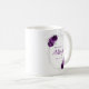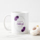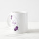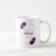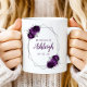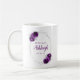 Diese hübsche Hochzeitskaffee-Tasse besticht durch einen silbernen geometrischen Rahmen, der mit Vintagen lila und silbernen Blumenbouquets dekoriert ist. Personalisieren Sie es mit dem Namen der Brautjungfrau in eleganter lila Kalligraphie, zusammen mit dem Hochzeitstermin in lila Sans Serif Typ. Das Wort "Brautjungfrau" kann für andere Mitglieder der Hochzeitsfeier angepasst werden.