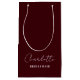 Give your bridesmaids a personalized touch with our Bridesmaid Minimalist Script Deep Burgundy Small Gift Bag. This elegant bag can be customized with their name, making it a special gift they'll cherish long after your big day.