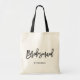 Maßgeschneiderte Totentasche mit Bridesmaid. Moderne und klassische Totentasche mit schwarzer Hand-Schrift "Bridesmaid". Personalisieren Sie diese, indem Sie den Namen des Empfängers, den Hashtag der Hochzeit oder andere Details hinzufügen. Ideal als Geschenk für Ihre Hochzeitsfeier oder Ihr Brautparty.