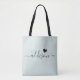 Diese schicke Tote-Tasche ist mit einem wunderschönen Hintergrund aus blasser Minze, einem modernen Script-Schriftart und einem zarten Herzdesign geschmückt. Die weiche, elegante Farbe und die ausgeklügelte Typografie machen sie zu einem idealen Accessoire für Brautmädchen oder alle, die stilvolle und trendige Designs Liebe haben. Dieser Totbeutel ist ideal für den Transport von Wesensstücken und bietet eine personalisierte Touch für jeden Anlass.