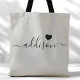 Diese schicke Tote-Tasche ist mit einem schönen warmen grauen Hintergrund, einem modernen Script-Schriftart und einem zarten Herzdesign geschmückt. Die weiche, elegante Farbe und die ausgeklügelte Typografie machen sie zu einem idealen Accessoire für Brautmädchen oder alle, die stilvolle und trendige Designs Liebe haben. Dieser Totbeutel ist ideal für den Transport von Wesensstücken und bietet eine personalisierte Touch für jeden Anlass.