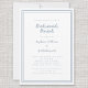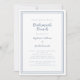 Das schlichte und schicke Design der Brautparty-Hochzeitszeitszene in Blau und Weiß zeichnet sich durch ein schlichtes, minimalistisches Design mit einem doppelten Rahmen in trendigem, staubblauen und glänzenden Hintergrund aus. Personalisieren Sie das Design mit Ihren Veranstaltungsdetails in trendiger Schrift und Schrift. Der Rücken passt gut in solide staubblaue Farbe. Ersetzen Sie die Vorlagendetails durch Ihre eigenen Angaben, die den Abstand zwischen den Absätzen wie im Beispiel verlasse, und verwenden Sie alle Kleinbuchstaben, sofern angegeben. E-Mail invitationsuites@gmail.com mit Fragen oder individuellen Anfragen.
