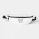 Für die Hochzeitsfeier, denken Sie an einen Fanny Pack, um persönliche Gegenstände für den Tag, oder für den Junggeselinnen-Abschied behalten und dann als ewiges Geschenk behalten. Eine weiße Fanny Pack mit schwarzem Text.