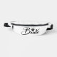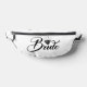 Für die Hochzeitsfeier, denken Sie an einen Fanny Pack, um persönliche Gegenstände für den Tag, oder für den Junggeselinnen-Abschied behalten und dann als ewiges Geschenk behalten. Eine weiße Fanny Pack mit schwarzem Text.