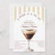 Retro Bride In einem Tini Bit Espresso Martini Bridal Dusche Einladung - Feiern Sie die Braut mit einem Cocktail-Thema Brautparty in einem klassischen Retro-Stil mit diesem Espresso martini Brautparty einladen. Mit einer Aquarellillustrierung des Cocktails mit Kaffeebohnen als Garnisch auf einem Bogen und gestreiftem Hintergrund. Bräune, helle Mocha, Creme und braune Farbpalette. Mit einem Mix aus Retro Vintag inspiriert Text und Skript-Schriftart. Bearbeiten Sie diese druckbare Brautduscheinladung, um Ihre Bedürfnisse Anzug. Bestellen Sie in Print oder als sofortiger digitaler Download, senden Sie ihn per Text, E-Mail oder Social Media. Ideal für einen Espressomartini Brautbrunch, Frühling oder Sommer Brautpartys im Innen- und Außenbereich.