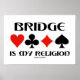 Wenn Sie religiös Bridge / Duplikatbrücke spielen, genießen Sie dieses Poster mit den vier Karten-Anzügen zusammen mit dem Sprichwort "Bridge Is My Religion". Lassen Sie andere mit diesem Poster, das perfekt für jeden Bridge Club ist, eine Doppelgängerin machen.