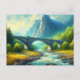 Eine majestätische Steinbrücke überspannt einen Fluss, Set vor dem Hintergrund von hohen Bergen, die in Sonnenlicht gedämpft sind. Die üppig grünen Wälder auf beiden Seiten des Flusses tragen zur ruhigen und ruhigen Atmosphäre bei.