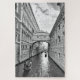 Ein wunderschönes Schwarz-Weiß-Foto von Venedig (Italien) und der ikonischen Seufzerbrücke. Dieses Rätsel enthält zwei der berühmtesten Symbole Venedigs: eine Gondoliere, die nahe der ikonischen Seufzerbrücke rudert, oder Ponte dei Sospiri