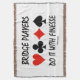 Wry bridge / duplizierte Bridge Haltung ist am Leben und gut auf diesem Werfer Decke mit den vier Karten Anzug zusammen mit dem Sprichwort "Bridge Players Do It With Finesse". Lassen Sie andere genau das, worauf Sie sich beziehen, mit einer Dose von zungenin-wange-suggestiven Brückenschlag-Spaß mit dieser Wurfdecke wiederholen!