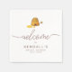 Braut zu Biene individuelle Servietten. Dieses im Landhausstil gehaltene Willkommensschild ist mit einem Bienenstock im Aquarell-Stil mit fliegender Biene und tropfendem Honig gestaltet. Der Hintergrund des Designs ist Set zu Weiß, kann aber in jeder gewünschten Farbe geändert werden.