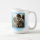 Brides Tasse mit großem "Brauttext" in türkisblau über einer Aquarellfarbe. Die Tasse ist nicht handbemalt, sie ist ein Design. Neben dem Text befindet sich eine quadratische Bildvorlage, die in den gleichen Farben gerahmt ist. Fügen Sie ein Hochzeitsfoto, ein Verlobung-Foto oder ein anderes.