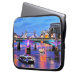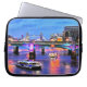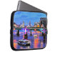 Dieser Laptop-Sleeve bietet nachts einen stilisierten Blick auf die Southwark und Tower Bridge von der Millenium Bridge in London, England, mit Booten, die an der Themse vorbeifahren. Die Southwark Bridge ist eine Bogenbrücke in London, die nachts zauberhaft aussieht und den Verkehr vom Viertel Southwark mit dem Londoner Stadtzentrum über die Themse verbindet. Abgesehen davon, wenn andere wegen vorübergehender Reparaturen gesperrt sind, hat es den geringsten Verkehr der Themse-Brücken in London. Dieses Foto wurde nachts von der Millenium Bridge in London aufgenommen, und es hat digitale Effekte, um seine Dynamik zu steigern.