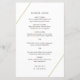 Modernes geometrisches Hochzeitsmenü mit zwei goldenen Linien, eine über die oben links und eine über die untere rechts über einen weißen Hintergrund. Ein minimalistisches Design, das immer noch elegant und stilvoll wirkt. Diese günstigen Hochzeitsmenüs werden auf Papierblättern gedruckt, um eine preisgünstige Option zu erhalten.