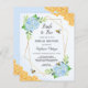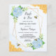 Diese Brautdusche bietet ein Blumendesign in Aquarelltönen mit blauen Hydrangea-Blume, Blätter, Honigbienen, Honigwabenbäumen und einem geometrischen Rahmen für die Imitate. Auch passende Produkte sind erhältlich.