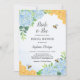 Die Brautdusche ist in einem floralen Aquarell-Design mit blauen Hydrangea-Blume, Blätter, Honigbienen und Honigwabenrüben gestaltet. Auch passende Produkte sind erhältlich.