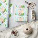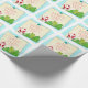 Cartoon Weihnachtsbrief von Weihnachten personalisierten Weihnachten (Weihnachten) Packpapier. Das Design umfasst ein Notizblock, einen Daumenstapel und Weihnachtsbäume auf einem hellblauen Hintergrund.