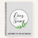 Dieses Notizbuch-Tagebuch mit grauem Hintergrund und handgezeichnetem grünem Kranz, personalisiert mit dem Namen Ihres Mannes. Unten steht "SCHREIBEN ZU MEINEM HUSBAND". Sie können auch den Stil und die Farbe des Schriftartes sowie die Hintergrundfarbe anpassen.