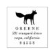 Unsere holzgeschmückte Rücksendeadresse Briefmarke zeigt Ihre Rücksendeadresse-Details in klassischer Schrift, ergänzt durch eine Fuchs Silhouette Illustration.