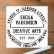 Briefmarke für kreative Künstler oder Krebskautschuk. Ideal für Etsy Shopbesitzer oder Kunsthandwerker. Firmenname, Geschäftstyp, plus zwei Adresslinien in kreisförmigem Effekt. Eine Briefmarke aus Geschäftsgummi für alle Arten von Schreibwaren, Briefumschlägen, Packungen etc. Briefmarke Ihrer Rücksendeadresse einfach und stilvoll.