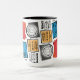 Passport-Briefmarke Reisedesign-Tasse, mit anpassbarem Text auf rotem Herzen.
