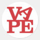 Das Wort VAPE in roten Buchstaben. Die Buchstaben VA sind oben (die A wird seitwärts gestrichen) und PE sind unten. Eine Hommage an die Pop-Kunst, die allen Dämpfern gewidmet ist.