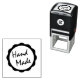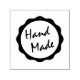 Maßgeschneidertes Skript "Hand made" auf einem scallopierten Kreis, um eine Aussage über Ihre Produkte zu machen. Wenn Sie es persönlich gestalten möchten, können Sie mich über meinen Shop kontaktieren.