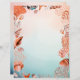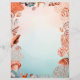 Ein farbenfroher Rahmen aus Muscheln, Meeresstern und Korallen umgibt einen Hintergrund aus Sand und tropischen Ozeanfarben. Wunderschön und auffällig, perfekt für Sie lässige Korrespondenz.