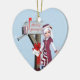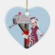 Ein niedliches "Holiday Greetings" Mail Carrier Elf doppelseitige Keramik Urlaubssornament. Dieser lustige Ferienschmuck zeigt ein niedliches Elfenmädchen mit einem Brief in der Hand, stehend neben einem Briefkasten mit Geschenken zu Füßen! Der Briefkasten hat innen ein rotes Geschenk mit einem goldenen Bogen und auch ein hellroter Bogen darauf. Alle sind vor einem fröhlich blauen Winterschnee fallen Hintergrund. Der Briefkasten liest auch "Holiday Greetings" Digital Art von XG Designs NYC. Ein tolles Geschenk für Freunde, Familie oder einen speziellen Mailsender, Mailman oder E-Mail-Frau! Für mehr beruflich, per E-Mail versankte Urlaubskarten und Geschenke besuchen Sie bitte unseren Shop!