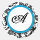 Bright Aqua Damask Monogram Wedding Stickers