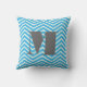 Bright Aqua Ivory und Gray Monogram Zig Zag Kissen