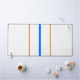 Dieses schlanke, sportliche Design zeichnet sich durch einen schlanken, leuchtend blauen, senkrechten Mittelstreifen aus, der an einen farbenprächtigen, weißen Hintergrund mit warmen, orangefarbenen, schwebenden Pinstreifen angrenzt.