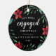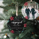 Feiern Sie Ihr erstes Weihnachtsfest als verlobtes Paar mit diesem charmanten und festlichen Ornament. Das Design zeichnet sich durch "erste verlobte Weihnachten" und das Jahr in weißer Schrift aus, umgeben von roten Poinsettia-Blume und grünem Urlaubspflege. Fügen Sie dem Rücken ein Foto mit passenden botanischen Verzierungen hinzu.