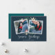 Elegante und festliche Urlaubskarte umrahmt zwei Ihrer beliebten quadratischen Foto mit einem subtilen Deckenrand und einem grün-weißen Urlaubspensum, das an den Ecken herausguckt. "Die Grüße der Jahreszeit" erscheint am unteren Rand in weißem Kalligraphieskript, mit Ihren Namen und dem Jahr darunter.
