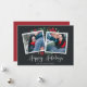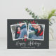 Elegante und festliche Urlaubskarte umrahmt zwei Ihrer beliebten quadratischen Fotos mit einem subtilen Deckenrand und einem rot-grünen Urlaubspensum, der an den Ecken herausschaut. "Happy Holidays" erscheint am unteren Rand in weißem Kalligraphieskript, mit Ihren Namen und dem Jahr darunter.