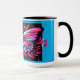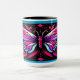 "Bright Butterfly" individuell anpassbare Kaffee/Tee-Tasse. Fügen Sie Ihrem Wohnbereich einen Pop Farbe und Lustigkeit hinzu, mit unserem blauen und rosa Schmetterlingskissen mit einem lebendigen Schmetterlingsdesign im Tätowierstil in heißen Rosa, Lavendel und Schwarz auf türkisfarbenem Hintergrund, was es zu einer vielseitigen und auffälligen Ergänzung Ihrer Wohngestaltung macht.
