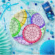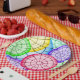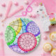 Bright and colorful geometric abstract circles pattern on personalized party favors and gifts.
