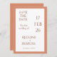 A refined and modern Save the Date card featuring a rich bright-copper color palette paired with clean, elegant typography. Designed for couples seeking a warm yet contemporary aesthetic, this customizable announcement sets the perfect tone for a stylish and sophisticated wedding celebration.