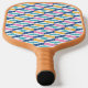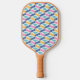 A Bright Pastel Modern Designed Pickleball Paddle Of Pink, Blue, Yellow And Gray Geometric Designs