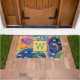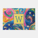 Diese niedliche mit Monogramm Türmatte zeichnet sich durch ein leuchtendes und buntes geometrisches abstraktes Muster in Rosa-, Blau-, Grün- und Gelbtönen aus. Personalisieren Sie das Monogramm mit Ihrer Wahl des Initials.