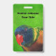 Dieser Name oder Identifizierungszeichen Abzeichen hat den Kopf und das Gesicht eines farbenfrohen Ara Parrot, dessen Federn blau, grün, gelb und orange auf einem grünen Hintergrund sind. Zurück ist der gleiche grüne Hintergrund. Passen Sie Ihren Namen und Ihre Informationen mit den Vorlagen an.
