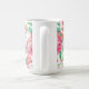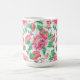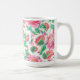 Elegante, helle, gürtelrosa Blume und grüne Blätter sind nahtlos. Weißer Hintergrund veränderbar.