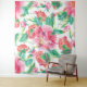 Elegante, helle, gürtelrosa Blume und grüne Blätter sind nahtlos. Weißer Hintergrund veränderbar.