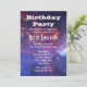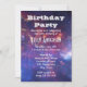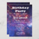 Einladung zur Geburtstagsfeier. Eine farbenfrohe und leuchtende Fotografie einer Galaxie. Eine Kombination aus hellen Farben und ätherischen Plasmabildationen machen dieses wunderschöne Foto zum Erlebnis. Eine Mischung aus lebhaften Blues-Orange und Rot, die alle wirbeln und mischen, zusammen mit ein paar glänzenden Akzenten verstreut, schafft ein wunderbares abstraktes Bild.