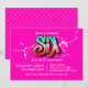 Eine unordentliche, hellrosa Graffiti-Einladung passt zu einem 6-jährigen.