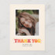 Vielen Dank an Freunde und Familie, dass Sie Ihre Abschluss-Feier im Stil mit diesem Single Foto danke Ihnen postcard. Es bietet Platz für ein Foto über die Worte "danke", geschrieben in Bubble-Buchstaben in fröhlichem Rosa, Orange und Gelb.