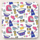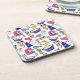 Helle Küche Utensils Design Drinks Untersetzer Perfekt für Köche, Kuchenmacher , Koch. Aus originalen Kunstwerken. Blaue, rosa und gelbe Motive auf weißem Hintergrund.