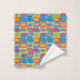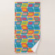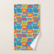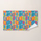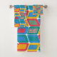 Dieses Handtuchhandtuch-Set hat ein modernes Design von hellen Farben, die abgerundete Rechtecke mit anderen Rechtecken innerhalb von einer Sammlung von Linien gebildet werden.